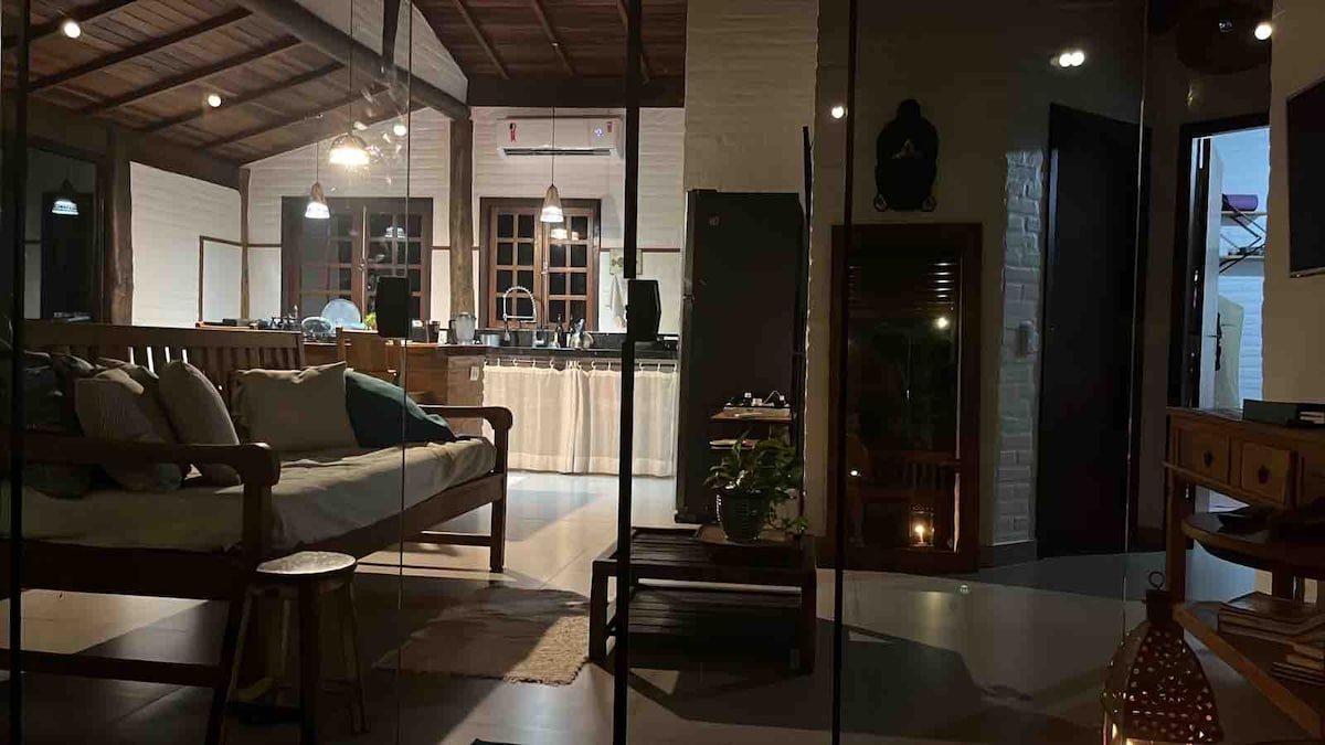 RÉVEILLON - Para reservar, por favor selecione 1 hóspede no momento da reserva, nessa data trabalhamos com valor fechado por casa. Está incluso arrumação diária por nossas camareiras. 2 suítes, banheira com ducha dupla, escritório, TV 50”, pit fire e churrasqueira. Lençol de linho, toalhas de algodão egípcio. Localizada em uma Vila com + 4 casas com total privacidade a 5 min do mar. *Por favor adicione o número correto de hóspedes. O valor listado é para até 2 hóspedes.