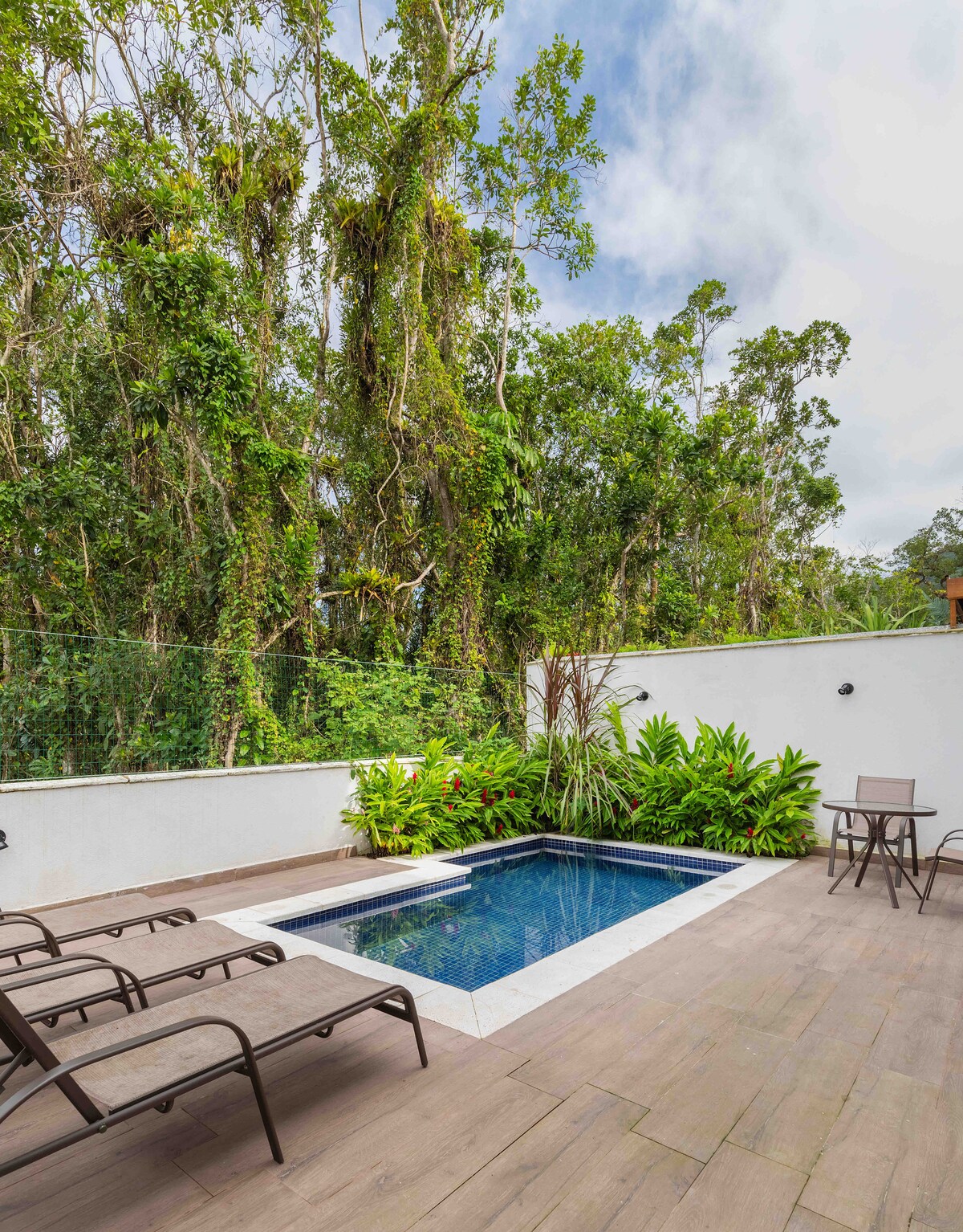 A Casa Mata Atlântica Maresias está localizada na praia de Maresias no Litoral Norte de São Paulo, à 10 minutos da praia, ela é perfeita para você desfrutar do litoral e se reconectar com a natureza, tendo o privilégio de aproveitar esse cenário único que é cercado das plantas nativas da Mata Atlântica. A casa possui uma sala integrada que acomoda perfeitamente até 3 pessoas, com todo serviço e enxoval completo para sua melhor comodidade e Jacuzzi privativa para você relaxar, no deck da casa.