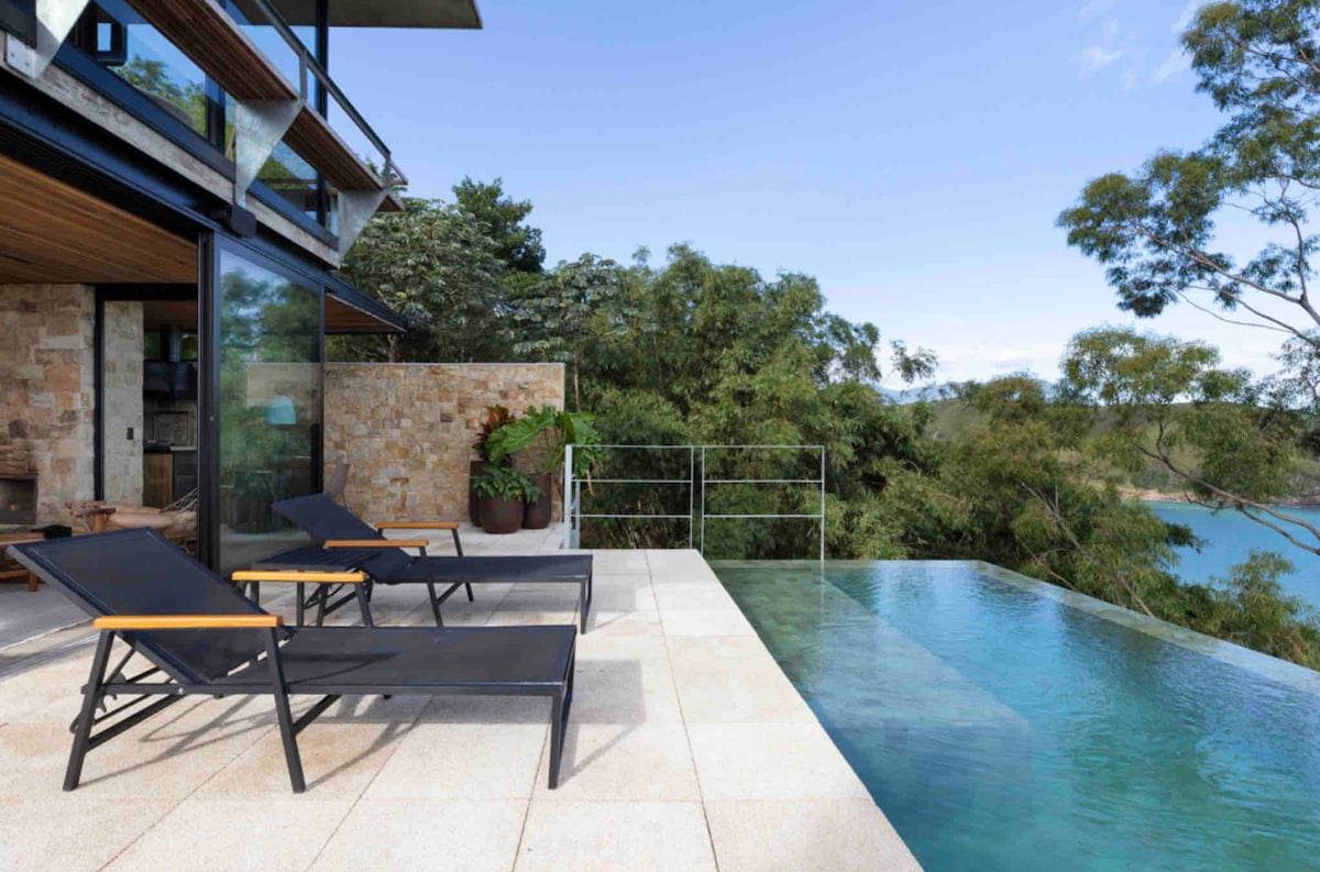 * Linda casa moderna na Av da Praia com PISCINA AQUECIDA 24Hs, 160 m2, ambiente clean, pet friendly, vista incrivel da mata atlantica, churrasqueira, 3 vagas de carro e portaria 24hs em condominio fechado. * Recem entregue na area mais exclusiva de maresias(canto do moreira), a poucos passos da praia. * Perto de restaurantes, mercados, farmacias e padaria. * Possue roupa de cama/banho, airfry, nespresso, wifi, 110V, TV smart nas suites, ar cond, maq de lavar, e guarda sol/cadeiras de praia.