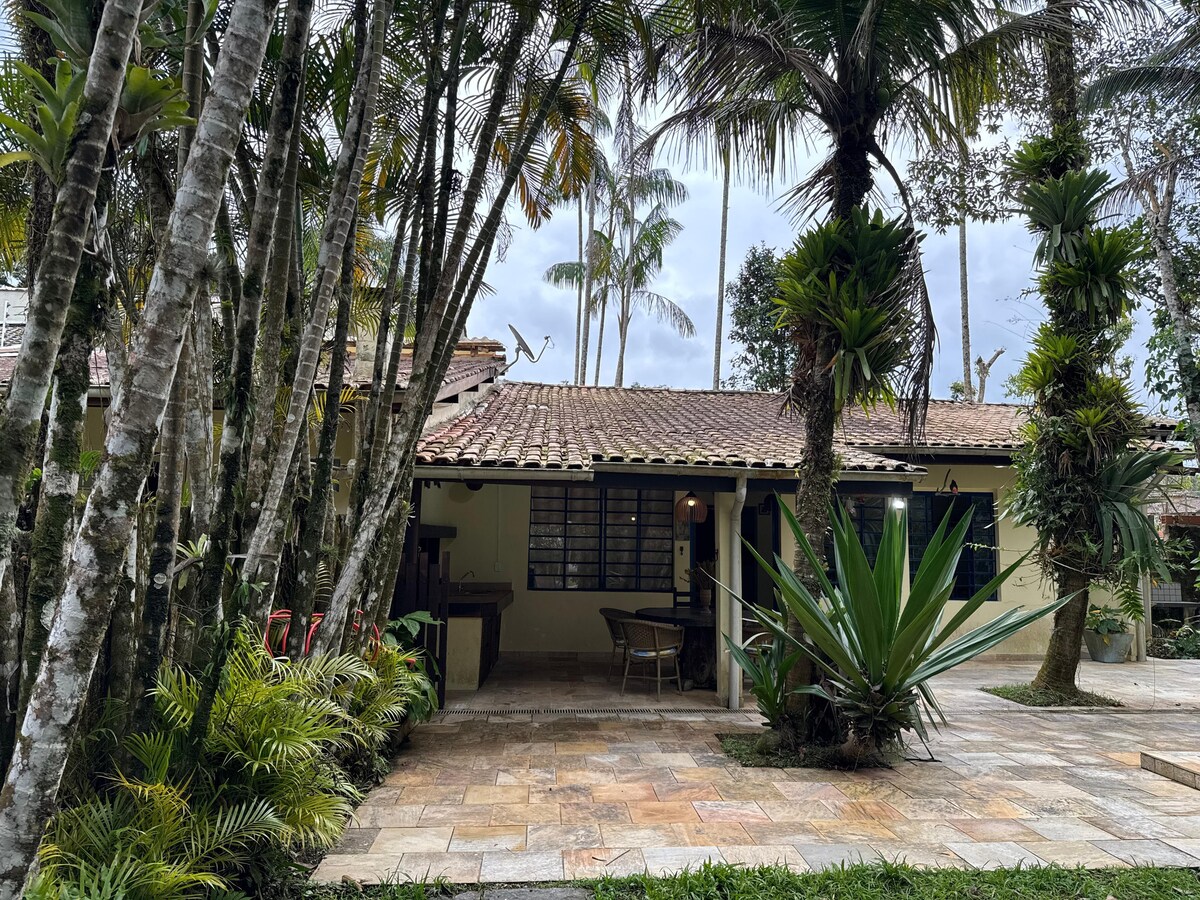 Aqui a sua estadia é uma experiência fora do comum. Leia os depoimentos sinceros de hóspedes que se encantaram com o Chalé da Reserva. Um lugar aconchegante e em harmonia com a natureza. Condomínio seguro a 800m da praia (região do canal de São Sebastião e Ilhabela). Deck com ofurô e mesa de jantar. Churrasqueira e jardim com vista pra mata. Relaxe e contemple a mata, o som dos pássaros e do riacho. Perfeito para casal. Acomoda bem 4 pessoas. Wifi e tv aberta.