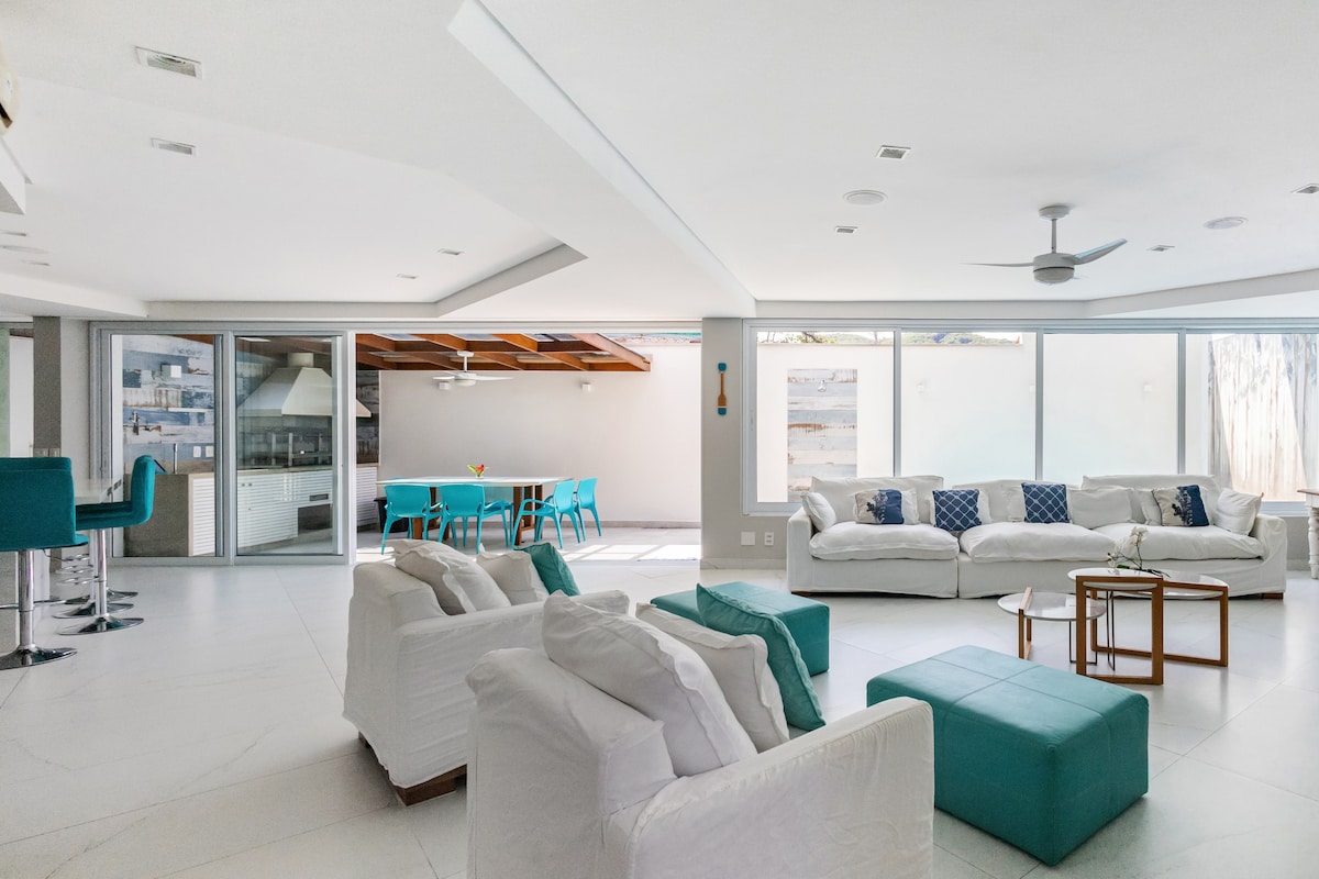 Cozy and modern beach-house, 220 m2, in condo with 24 hs security service. Perfect location: 150 mts away from the beach and 500 mts to the town center. No car needed! The condo offers free beach service and has a heated swimming pool.. 4 ensuite rooms (each with own bathroom), two private terraces with beautiful views, open kitchen, amazing deck with outdoor grill surrounded by native vegetation. All rooms have air conditioning, including living and dining room. High speed internet available.