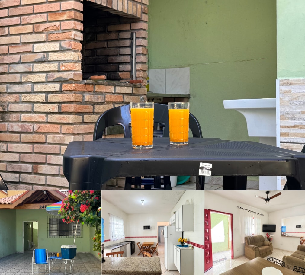 -3 quartos sendo uma com suíte. - Ventilador de teto. -Internet. -Churrasqueira. -3 vagas para garagem. -Grande espaço gramado para crianças. -Fogão, Geladeira, Micro-ondas, forno e todos utensílios de cozinha. -100m metros da praia (da para ir a pé). -60m de um lago (para quem deseja pescar). -Capacidade : Máxima 8 pessoas (3 camas de casal e 2 de solteiro) -Lugar muito silencioso. -Não ofereço serviço de quarto, como toalha lençol etc...(mas caso houver emergência), posso auxiliar no momento.