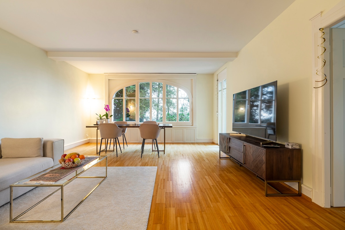 Diese einzigartige Unterkunft hat einen ganz besonderen Stil. Jugendstilvilla Baujahr 1912 mit grosser Terasse 20m2 und Garten befindet sich im Hochparterre eine grosse WG 80m2 mit allem was das Herz begehrt. Wir tragen Sorge zur Ambiente. Nahe dem Zentrum und trotzdem sehr ruhig gelegen. Eine Kirche in der Nähe , im Innern hört man allerdings nichts davon, ab 00:00 läutet sie nicht mehr. Die Wohnung ist sehr schön, gross ,sauber, hell und neu möbiliert. Fühlt Euch willkommen. Carpe Diem 🦋