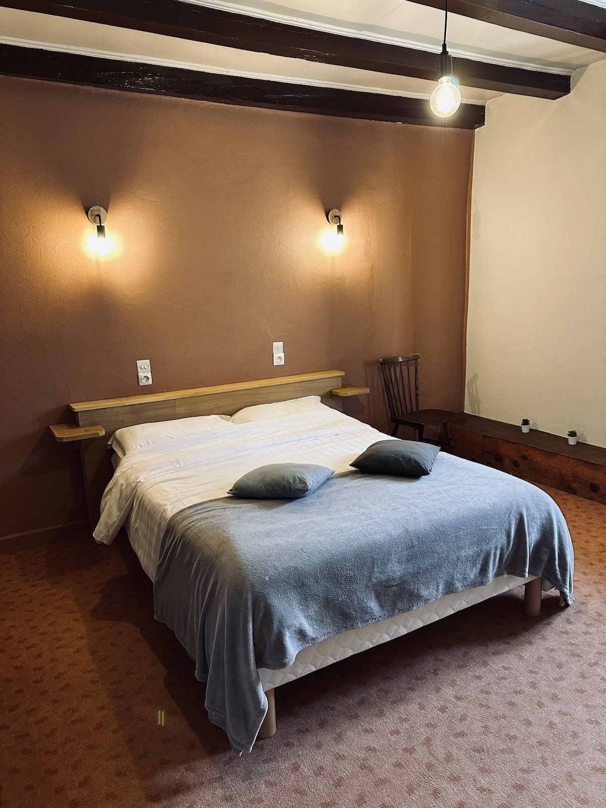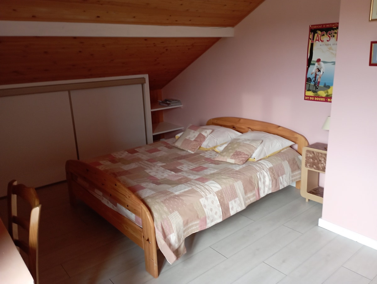 Let yourself be charmed by this delightful room with a closet and private bathroom. Bed linen, towels, and toiletries are provided. A delicious breakfast is offered for 6 € per person. Located in our family home, you will enjoy a warm and friendly atmosphere. Close to Geneva, ski resorts (3 km), Lake Geneva, and the Haut-Jura National Park, this room is ideal for business trips and romantic getaways.