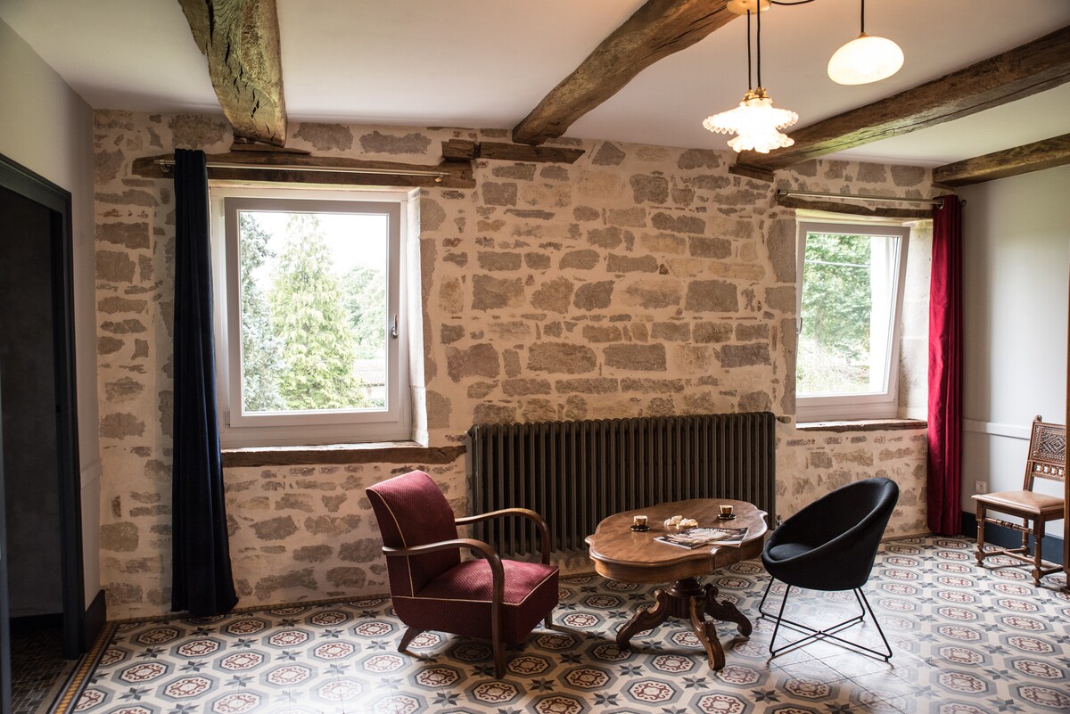 Room in a wonderful manor in the heart of the Franche-Comté region, near the medieval town of Dole. Nearby are hiking trails, and a Michelin restaurant. The property is a 19th-century manor with its own private park. We offer a lovely complimentary breakfast as well. During the autumn and winter, we offer our rooms to rent long-term: from two weeks to several months. Please contact me if interested, I would be happy to inform you!