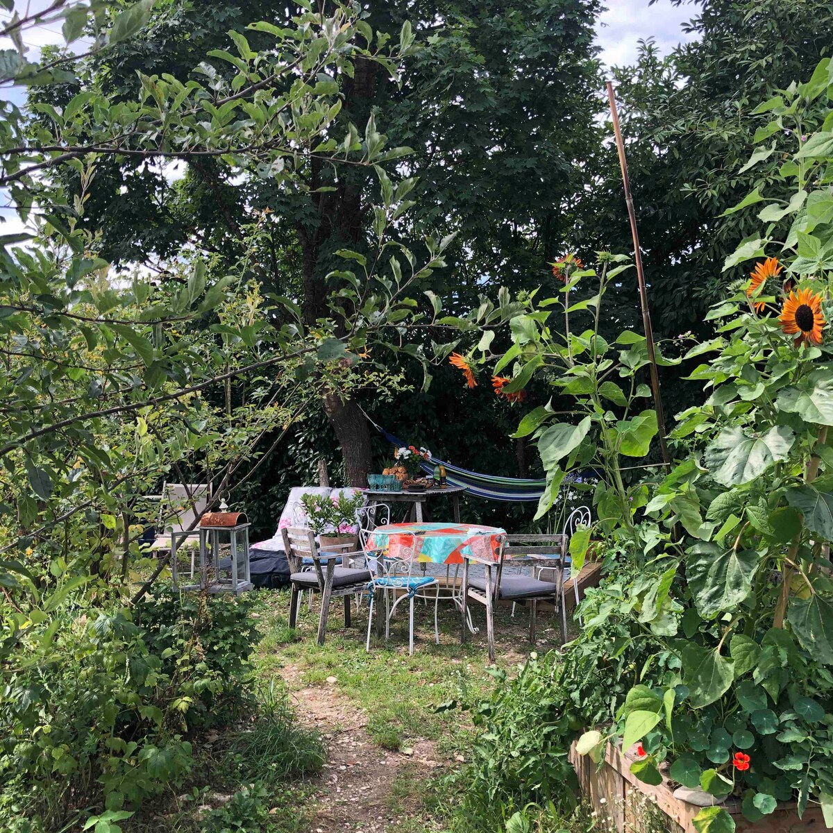 Charming, friendly, air-conditioned and elegant chalet of 40m2 spread over 2 levels with bedroom and TV area upstairs. Beautiful private garden of 400m2 with views of the countryside, cows and geese… In Bresse on the border with Jura (2km). Quietude, 15 minutes from the Louhans market, the fruit farms in Comté, the Jura vineyards, less than 1 hour from those of Burgundy and 1h30 from Fort des Rousses. 35 minutes from Lakes Vouglans or waterfalls.