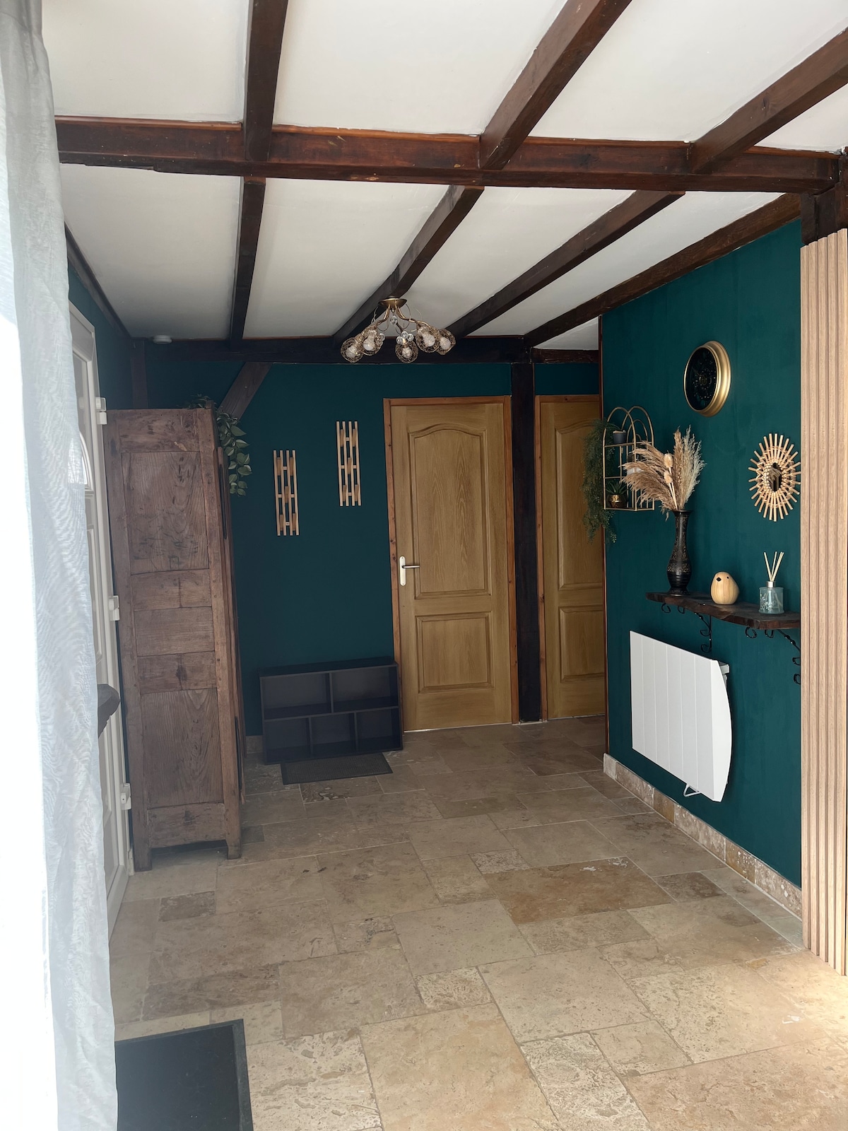 Notre gîte à été créé dans notre ancienne écurie. Il se situe dans notre longère, ancienne ferme au plus près de nos animaux sur un terrain de 10 000 m² sans vis-à-vis. Ce gîte de 40 m² style loft comporte une chambre avec un lit 160/200, un séjour avec canapé-lit, une cuisine toute équipée, une salle d'eau et WC indépendant. Vous disposerez d'une terrasse privative et aurez accès à toute la propriété. Animaux: chats uniquement.
