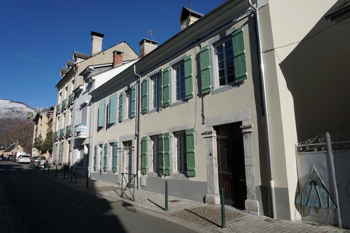 Maison de ville située dans le quartier de la mairie d’Oloron Ste Marie. Le quartier est calme, silencieux et avec peu de passage. La maison est à 10 minutes à pied de la gare. Des places de parking sont situées près du logement . Le marché de la ville est juste à côté de la maison et à lieu tous les vendredi matin .