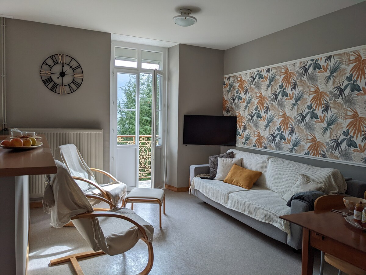 Notre appartement est chaleureux et personnalisé avec une vue directe sur le château depuis le salon . Notre décoration est inspirée de nos nombreux voyages et de nos expériences dans les grands salons Français et Internationaux du design.