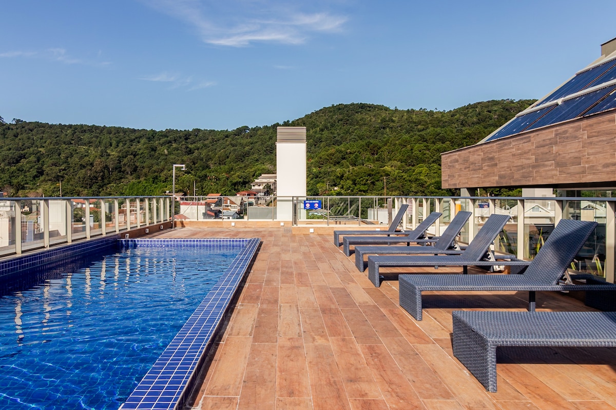 Relax, de-stress and enjoy the sun in one of the most beautiful places in Brazil! From the balcony, you can enjoy the breeze and the view of a late afternoon or wake up and check if the day is for the beach or a heated pool. Apartment with perfect location for singles or couples who like to enjoy the movement of bars and restaurants in Jurerê Internacional without having to walk far. Also ideal for bringing small children and enjoying the tranquility and benefits of a resort.