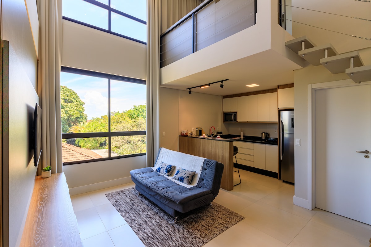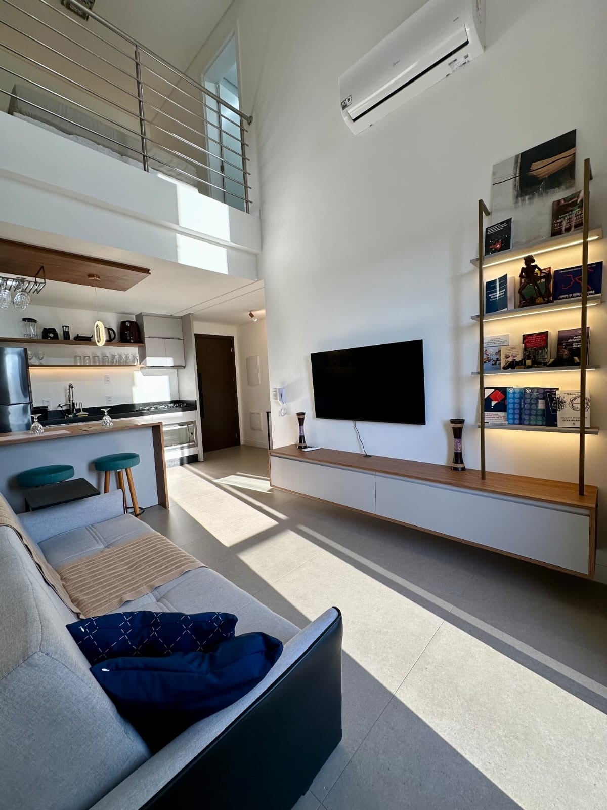 Looking for a cozy checkpoint in the heart of the city? You'll feel at home in this well-planned loft. Located in downtown Florianopolis, it's perfect for someone looking to explore the island or attend to an event nearby. Includes: - Queen bed - Complete gourmet kitchen - Washer and drier - Big table for meals and Home Office - 360 Rotational TV so you can watch from anywhere in the loft - Clean and modern bathroom - Wi-fi - Complete air conditioning