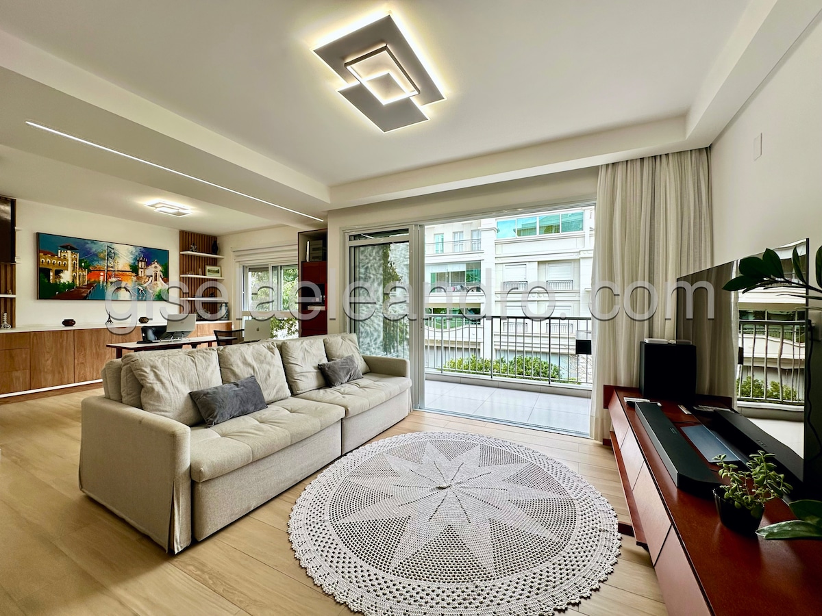 High Standard Apartment, located in one of the most famous neighborhoods in Brazil. Jurerê - Florianopolis. It has an area of 140m2 and has two super modern suites that are very well equipped for your comfort. Our space contains: * Kitchen: Duplex refrigerator, dishwasher, electric oven, microwave, Nespresso coffee maker, blender, sandwich maker, cooktop, complete crockery and pan set, * Living Room: - Samsung TV ''75'', Electric sofas and armchairs.