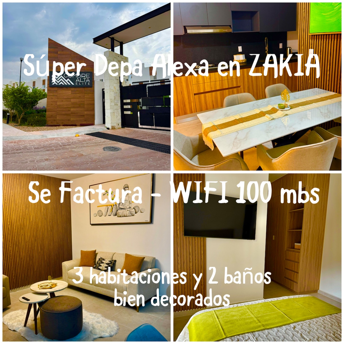 Departamento Planta Baja en Zakia Encantador, Tranquilo, Elegante, Completamente equipado para cortas y largas estancias Sala Comedor Cocina Equipada Sala de TV con sofa cama 2 Recamaras con Closets 2 Baños Completos Centro de lavado Escritorio con silla Wifi y Ethernet con fibra optica Estacionamiento Excelentes amenidades: + Casa club con Coworking + Gimnasio con terraza + Alberca climatizada con camastros + Areas verdes con asador + Juegos Infantiles + Seguridad y control de acceso 24 hrs.
