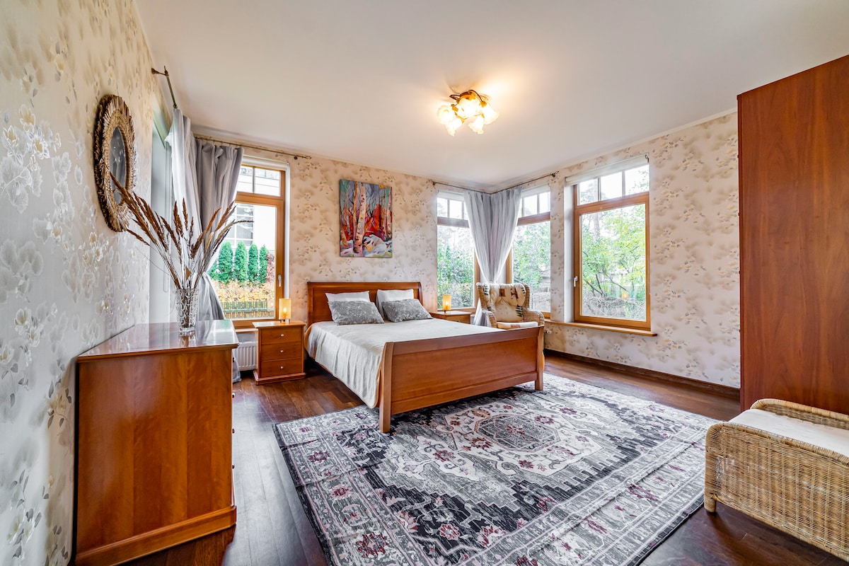 Welcome to Vaivari Retreat! Our house is in a residential neighbourhood in Jūrmala, just a short 9-minute walk from the beach. Perfect for a family vacation or small gathering with friends. You will have the whole place for yourself, with a private entrance, on-site parking, a flat-screen TV, a washing machine, large terrace under, as well as a private backyard with barbecue facilities and patio for outdoor seating. If you're looking for a home away from home, look no further!