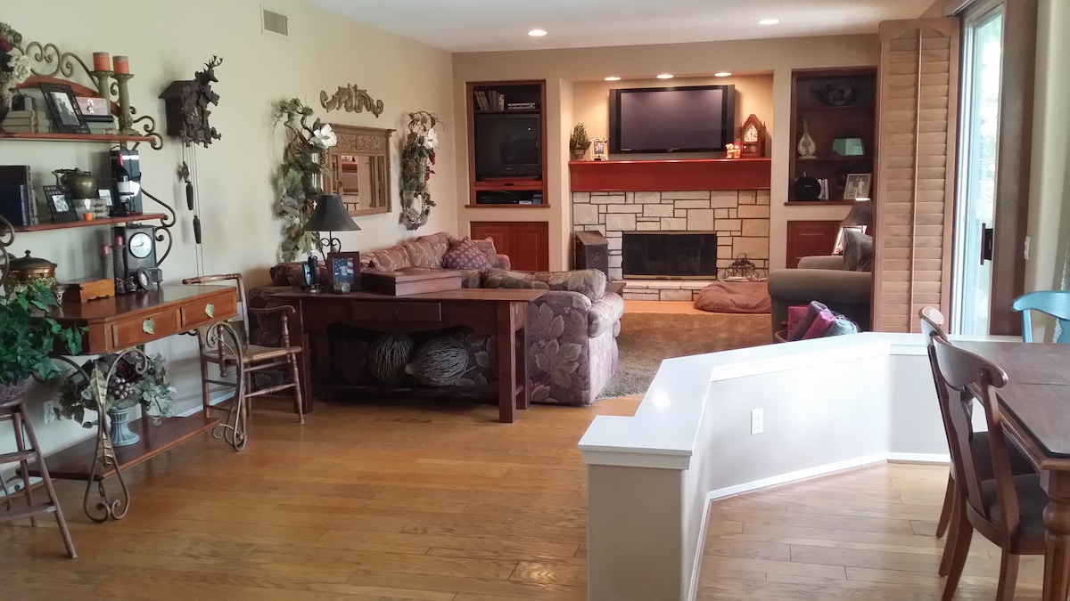 This place has a deck with a lake view and lots of patio furniture. The family room boast a 58 inch tv and a couch that folds into a queen size bed. The Kitchenette has a coffee machine, George Forman grill, electric skillet, toaster and blender. Dishes and silverware are provided. There is a barbecue on the deck also. There is a small refrigerator provided. There is a door that connects to the other unit that is locked on both sides. The property manager is on site for assistance.