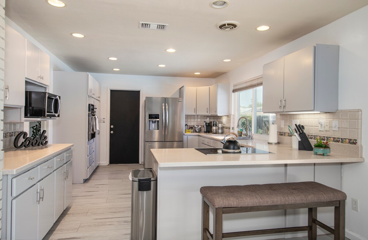 Enjoy the elegance, style, and cheerfulness of this one-story home. Unwind and retreat by the peaceful private pool, relax in the jacuzzi, or enjoy the beautifully decorated living room designed for your comfort. If you’d like to keep up with your workout routine, a small home gym is available for use. Step outside to our mini putt-putt area, perfect for a little fun, friendly competition, and creating memories. A perfect home for you, your family, and friends to relax and enjoy.