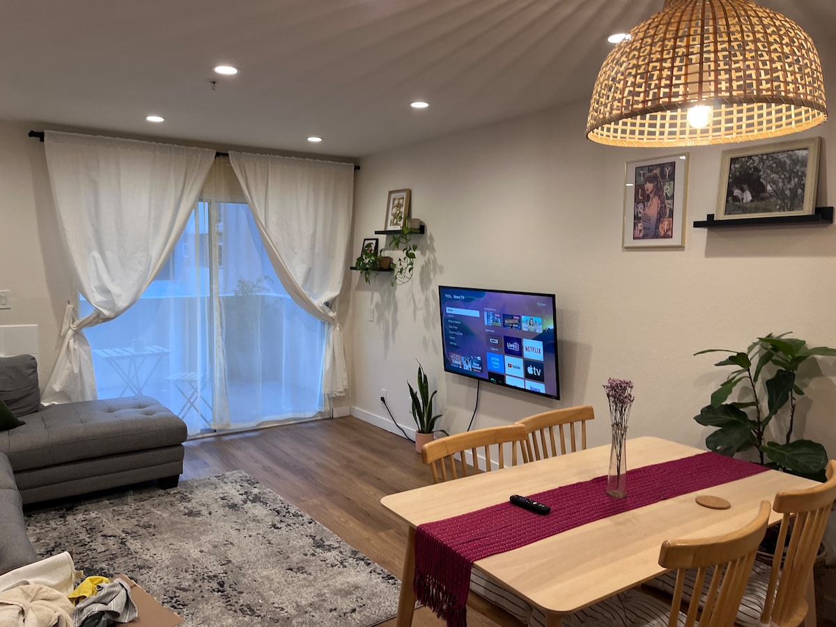 Enjoy your stay at this farmhouse style 2 bed 2 bath condo! Extremely clean and well maintained, this space is conveniently located a few minutes from the downtown area, Central Plaza, and walking distance from Riverside's well known Mt. Rubidoux Hike; a 1-mile trek that gives a stunning view of the entire city. There is a park across the street that kids love which also has a nice walking path. The neighborhood is very quiet and peaceful. Access to Wifi, washer/dryer, 2 car garage, and more!