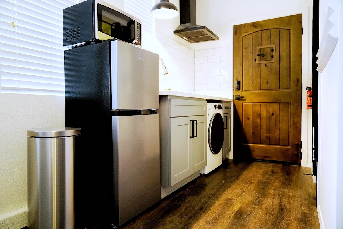 DESIGN-CLEAN-SAFTY New renovated Private entry Close to a park Bright space Nice designed Tiny home Memory foam mattress-Queen Well organized Clean Desk-work from home Laundry and dryer 2 in 1 machine w/ private bathroom and small kitchen Refrige and microwave Cookware and dish Soft water system Ceiling fan and individual air conditioner Best place for work and relaxation.