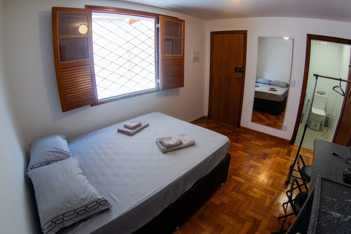 Just minutes from Savassi, bars, shopping malls, and concert venues. Accommodates up to 4 guests and features hot & cold air conditioning, a dedicated home office space, high-speed Wi-Fi, a compact equipped kitchen, minibar, and hotel-quality bed & bath linens with robes. It will be a pleasure to host you!