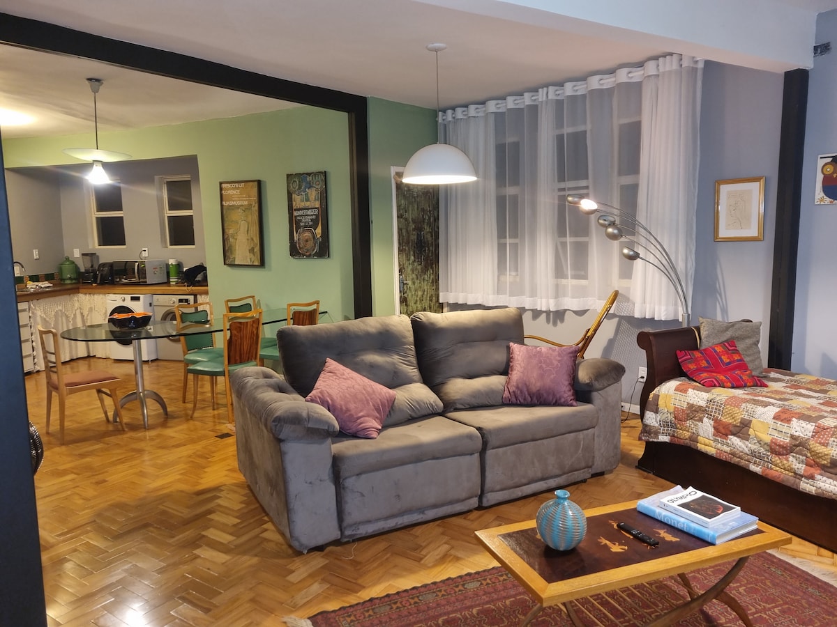 Com 70 m2 , para quem quer privacidade e independência . Na Savassi à duas quadras da Praça da liberdade e do Shopping Pátio Savassi. Com uma suíte, banho reversivel social , sofa cama para hospedes, janela da suíte antiruídos, ar condicionado quarto e sala, wifi300 megas, smartv de 75 polegadas , Hometheater, cozinha completa , microondas, serviço de quarto, camareira, manobrista, piscina , academia, sauna, restaurante e portaria 24horas.