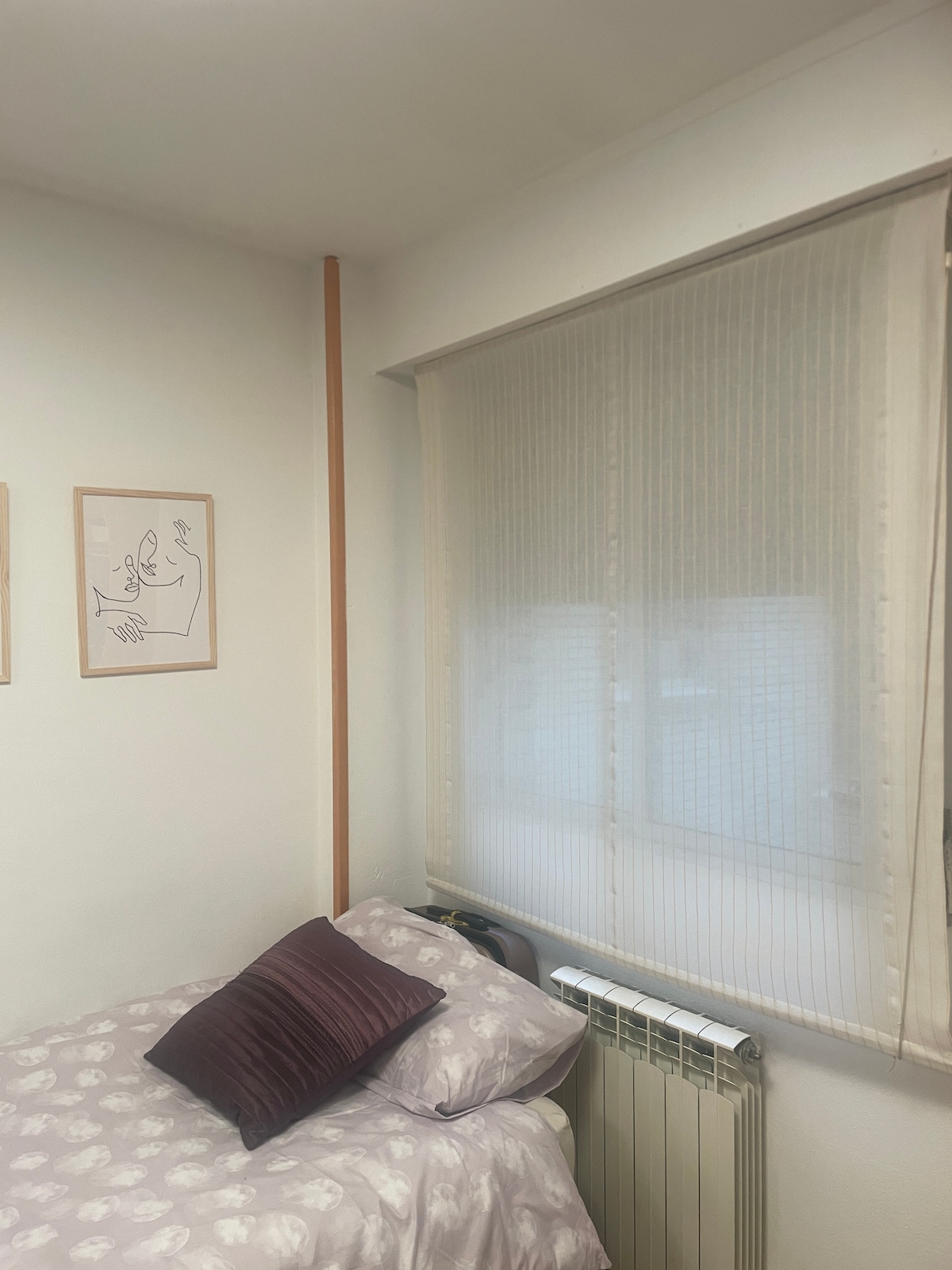 Habitacion AMPLIA Y LUMINOSA. Cama individual de 1,05 con armario, cajones y escritorio. WIFI potente fibra. Toallas lavabo y ducha. Habitación con llave. Desayuno incluido. Zona Romareda. A 2 minutos del Hospital Miguel Servet y Campo de Futbol. A 8 minutos andando del Hospital Clinico Universitario, de la Universidad, del Conservatorio, del Auditorio de Músic y Escuela de idiomas, a 5 minutos del hospital militar. A 2 minutos del tranvia (6 min. Al centro ciudad). Logísticamente perfecto!