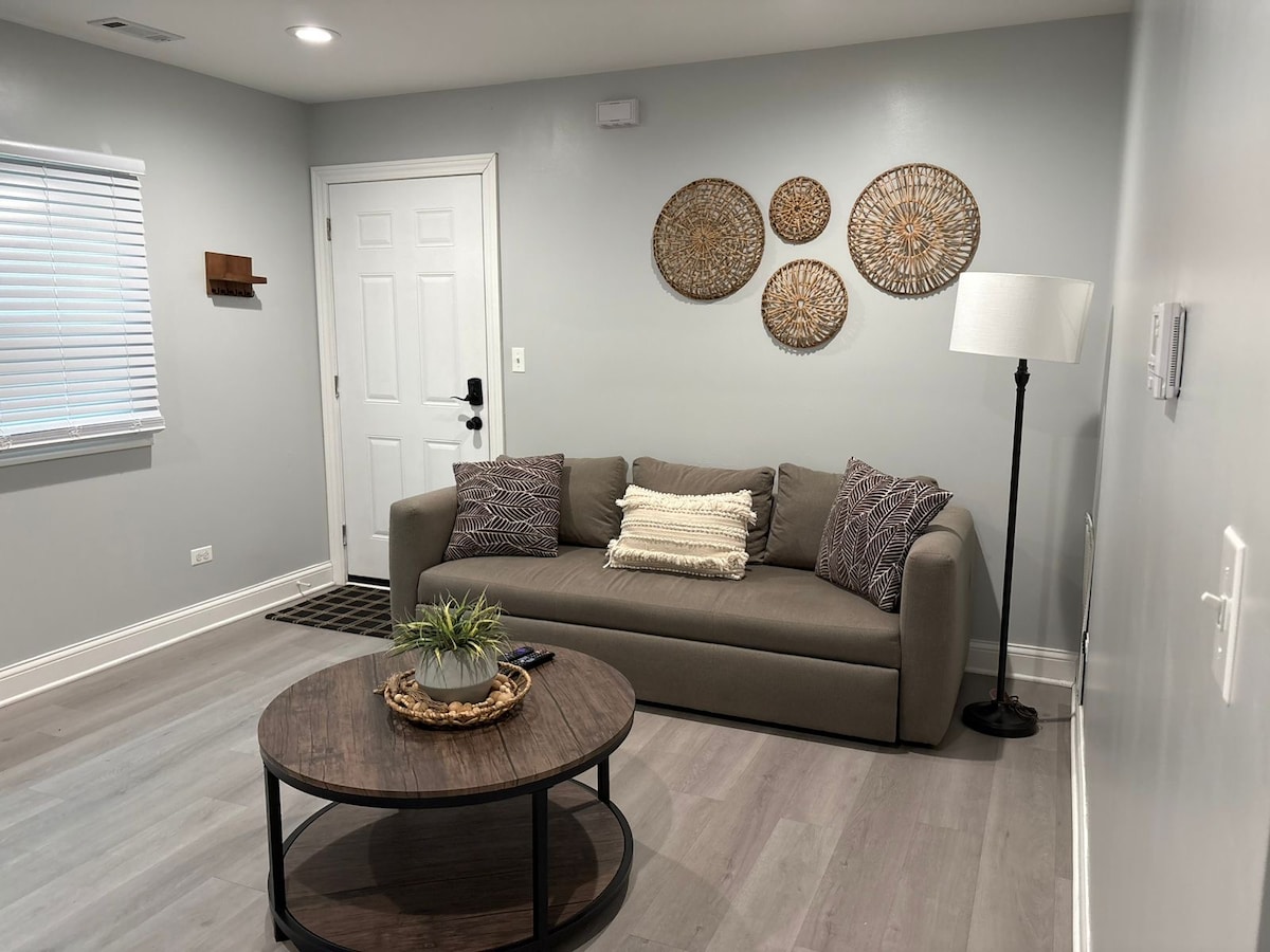 Welcome to your cozy 3rd-floor studio suite in Berwyn, IL! Perfect for up to 3 guests, this stylish retreat is walking distance to shopping & dining. Close to public transportation & the 290 expressway. Enjoy streaming your favorite shows on the Smart TV, stay connected with fast Wi-Fi, & keep your snacks fresh with the mini-fridge, microwave, & coffee maker. The full-size remodeled bathroom adds a touch of luxury, & the outdoor space with a grill & fire-pit is perfect for relaxing evenings.