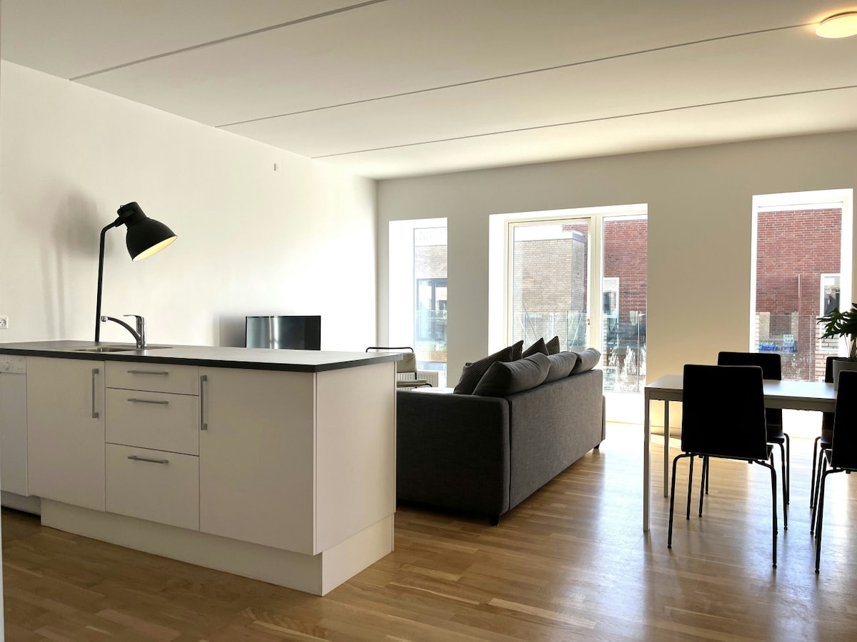 The guest suite is separated from the rest of the house. We live next door - just ring the bell if we can help you. The guest suite is exclusively being used for Airbnb. The large room has one large bed with room for 2 (3) people, kitchenette with basic spices and kitchen equipment, one cooktop, fridge, microwave oven, as well as a dining table and couch. The smaller room has two single beds. There's free wifi (300Mb) in both rooms. Also free Netflix There's a large bathroom with toilet, changing table, baby tub, shower, and underfloor heating. We supply bed linen and towels There are two private terraces. One facing west and one with a beautiful view facing east. Here you can enjoy your morning coffee or your evening dinner. You can cook yourself in the kitchenette or order pizzas from our local pizza bakery (300 meters away). There's only 400 meters to several grocery stores. 2 playgrounds within 200 meters