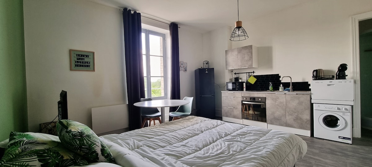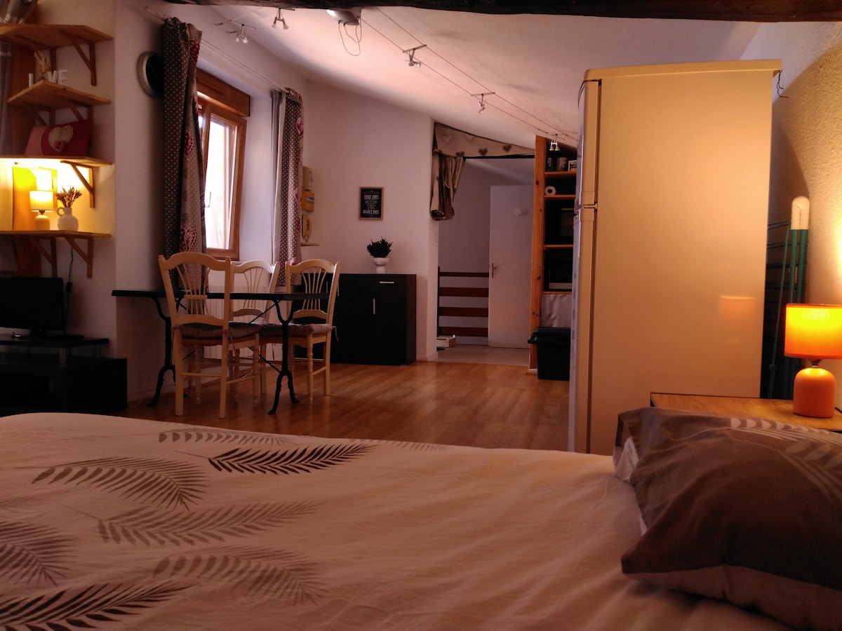 Vous apprécierez ce logement avec une literie confortable et aussi pour son charme. Idéal pour un couple. Muni de TV lecteur DVD. Avec une terrasse privative, deux transats, déserte table et chaises, plancha, fauteuils, parasol. Classé 4 étoiles par syndicat d' initiative local Peignoir de bain à disposition, mais tout est fourni à volonté, linge de maison, linge de table, accessoires de cuisine, nécessaire de toilette, etc NB : Les animaux NON ADMIS