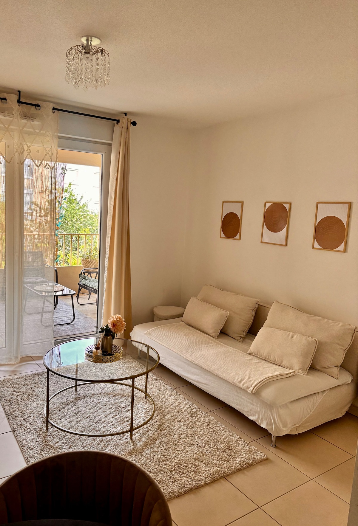 Profitez d'un logement élégant et central.Studio pouvant accueillir jusqu'à 4 personnes. A 15 minutes en vélo de la plage de Carnon. A 3 minutes à pieds du centre ville de Pérols avec restaurant, tabac, banque, médecins, commerce de proximité et marché (le samedi). Tramway à 3 minutes à pieds pour se rendre à Montpellier centre. Aéroport et gare Montpellier Sud France à 10 minutes en voiture. Parcours santé, Parc Expo à 10 minutes en vélo. 20 euros la recharge pour voiture électrique.
