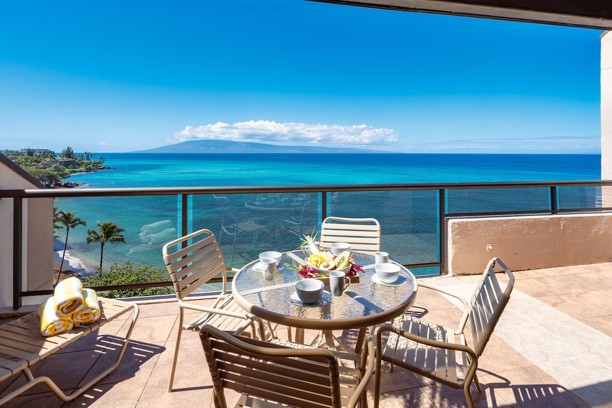 Bask as you wake to the sound of the waves crashing below and the sight of pristine turquoise water and expansive rainbows. You may pinch yourself as you take it all in, thinking you are still dreaming. We are excited to be able to offer Maui Kai 807, a studio condo in the original beach front high-rise on Maui's west side. No other resort in Kaanapli will put you closer to the ocean's edge. Enjoy the sights of sunsets, turtles, dolphins, and whales (Dec-March) right from your lanai.