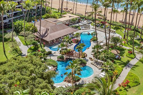 Located within the Maui El Dorado, this condo is surrounded by palm trees with a peek-a-boo view of the ocean. This is a 12-minute walk from the Whalers Village and restaurants and 1 mile from Black Rock Beach. The complex is located adjacent to the golf course. This Resort requires a one-time charge of a $65 registration fee and an additional $22 per day paid directly to the resort at check-in.