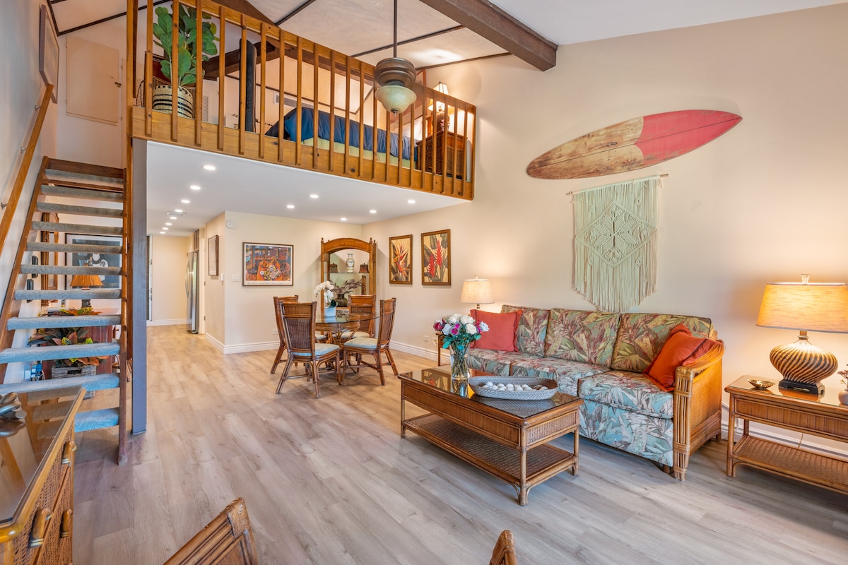 Note... MKV resort charges $35 per day due at check in. Beautifully updated spacious studio with ocean view. Amazing sunsets and whale watching are found here. Features new modern furniture, fresh paint and new decor throughout. MKV has direct beach access, two swimming pools, hot tubs, spa, gym, shuffleboard, outdoor BBQ's and Castaway's ocean front bar & grill. Parking is super convenient & free. Free trolly rides to Whalers village and Ka'anapali restaurants, markets and golf courses.