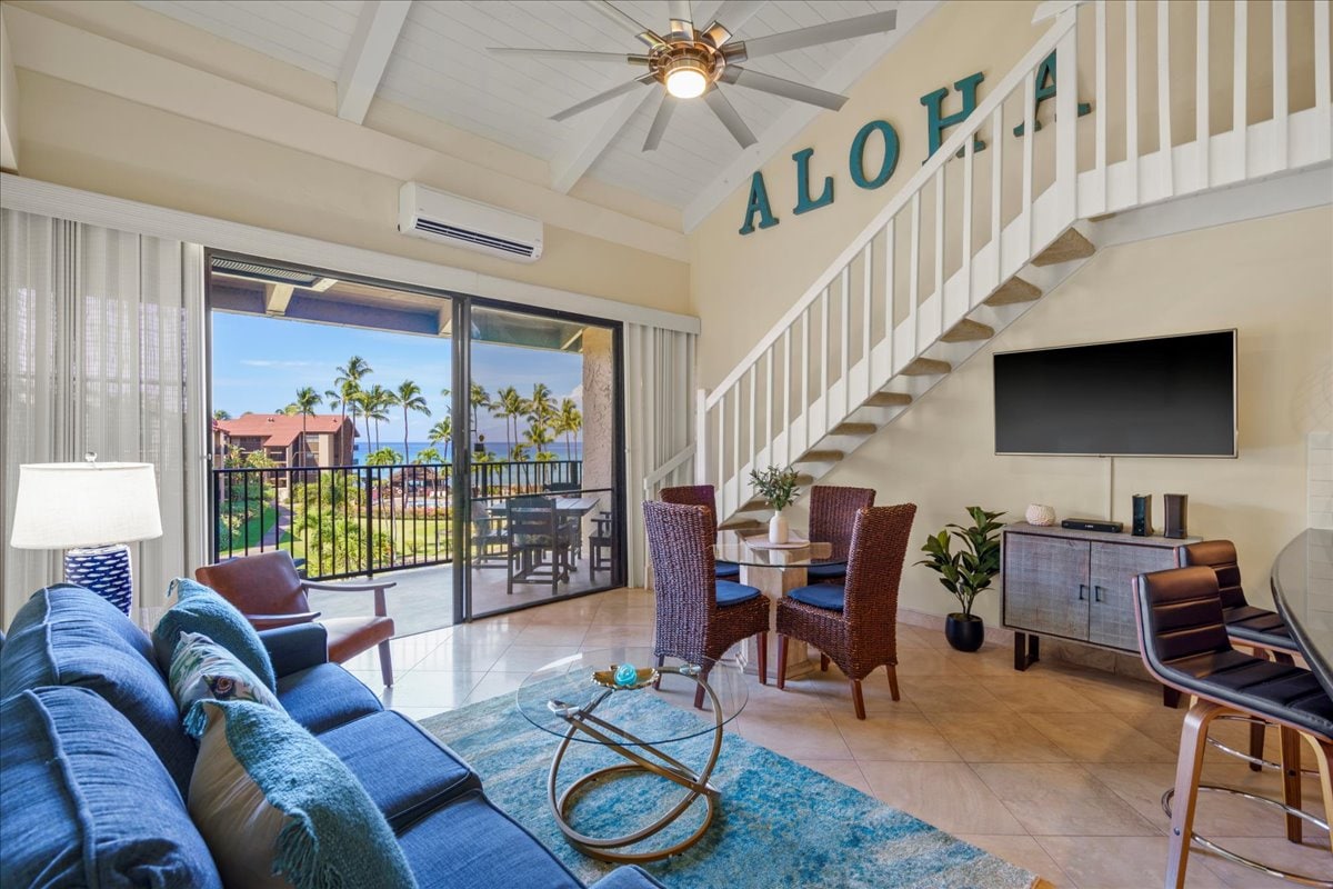 Welcome to Mahana! This oceanfront one bed, one bath sleeps 2-4 & features stunning panoramic views of the ocean, beach and outer islands from the living room, dining area, bedroom, and lanai. Living Room highlights include 65" HD TV, AC and large sectional with queen sofa bed. The bedroom boasts a King plush mattress. Kitchen has granite countertops with updated appliances and the bathroom features a large tiled walk-in shower. This unit also includes a workspace with free Wi-Fi and printer.