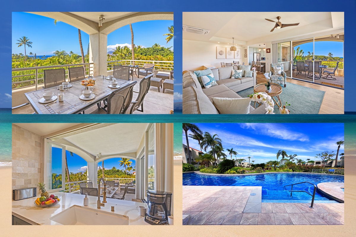 Maui is outdoor living at its finest! There is no escaping the view. This condo does not border a noisy parking lot nor street - The view from this condo makes the ocean look like it's your swimming pool, its spectacular! You can see the ocean while sitting on our tropical couch or cooking dinner in the kitchen! If you love the ocean, this is it! We have a first class fully remodeled condo with a full-size fridge, double ovens, microwave and granite countertops.