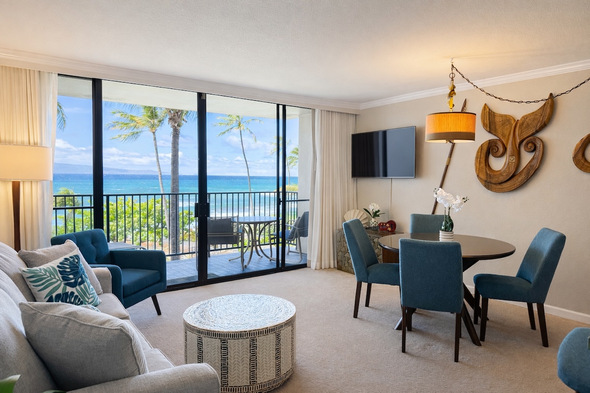 *** NO RESORT FEES! *** Our Studio condo is Unit 1013, located in The Lanai Building at The Mahana. We recently had our roof replaced summer of 2024, so there will be no construction work in our building this year. Newly renovated 10th-floor OCEANFRONT studio condo with the best views on Maui! Drift to sleep on the new KING-sized memory foam mattress and awaken to the sounds of crashing waves. The Mahana on Kaanapali Beach offers a prime location near shops, restaurants, and the best beach!