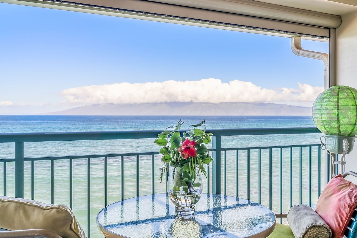 Locally Owned and Operated Studio condo with the best direct beachfront location, panoramic Ocean views, sunsets, and seasonal whale watching. The owner’s spared no expense in renovating this unit making it hand’s down one of the nicest units in all of the Mahana. Wake up to the cool tropical breeze and sounds of the shoreline just 50 feet away. Located on North Kaanapali Beach. Enjoy stunning views and the warm Maui sun inside while central AC keeps you cool and comfortable any time of day.