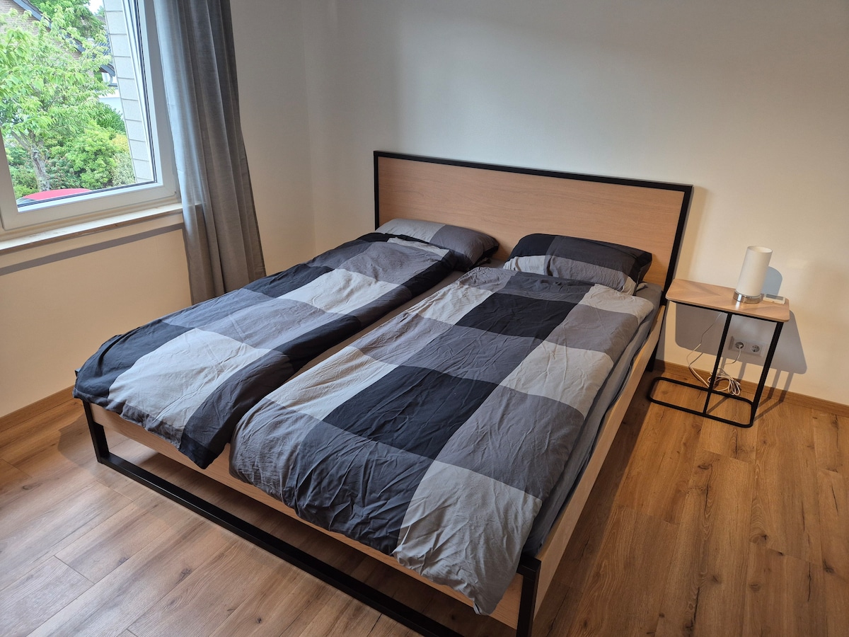 Möblierte Wohnung, ca. 65 qm, Zweifamilienhaus, 1. Etage. Einbauküche, Bad mit Fenster u. Badewanne/Dusche, Wohnzimmer, Schlafzimmer mit 180 cm Doppelbett für 2 Personen u. Schlafcouch (140 cm) für einen Erwachsenen oder 1-2 Kinder. Mitbenutzung des Gartens, von Waschmaschine/Trockner im Keller, freie Parkplätze , ruhiges Wohngebiet in D-Süd, ÖPVN angebunden: S-Bahn Station Eller-Süd zu Fuß o. mit Bus (Linien 723 /732) gut zu erreichen. Unterkunft für Paare, Geschäftsreisende u. Familien