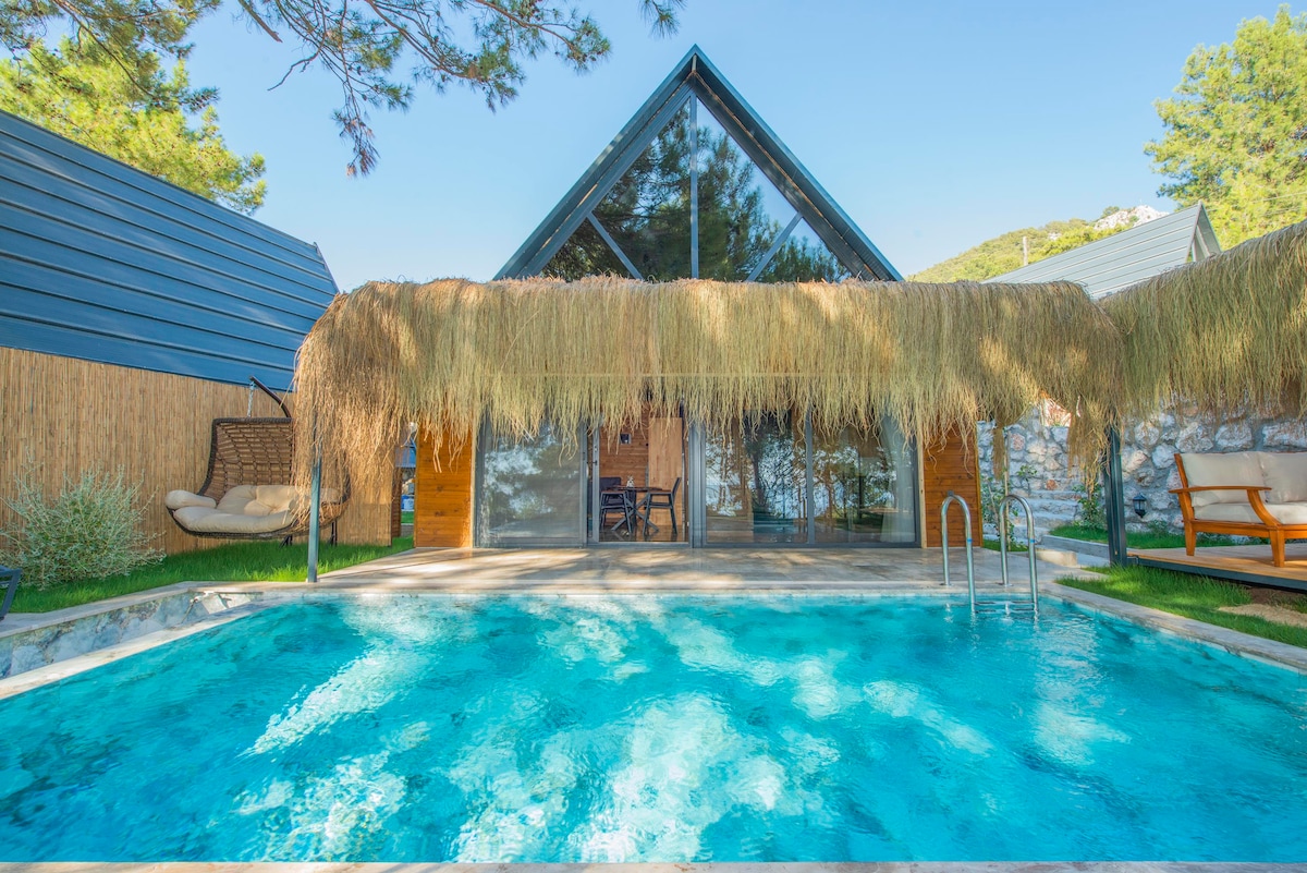 Villa Robus Sun, located in Fethiye's scenic Kirme region, offers a tranquil, luxurious vacation experience. Nestled in nature, it features modern and stylish decor, spacious living areas, and a private pool for an unforgettable stay. Ideal for nature walks with its proximity to the Lycian Way. Experience authentic village life and local cuisine. Close to Ölüdeniz and Faralya for easy access to tourist attractions. Enjoy a comfortable, nature-immersed holiday at Villa Robus Sun.