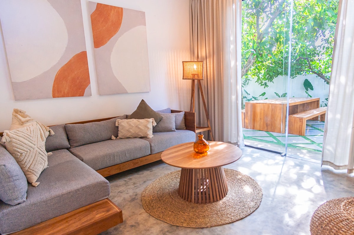 Our brand-new Terrene Villa is a playful oasis by the beach. It's the spot for you to make the best memories with your loved ones. With plenty of cozy corners and a garden with a plunge pool to cool down, we've created the ultimate destination for fun and relaxation. Whether you're in the mood for some private downtime or family time, it's all here for you to enjoy. And if you get the itch for adventure, Kabalana Beach, epic surf spots, shops, and cafes are practically at your doorstep.