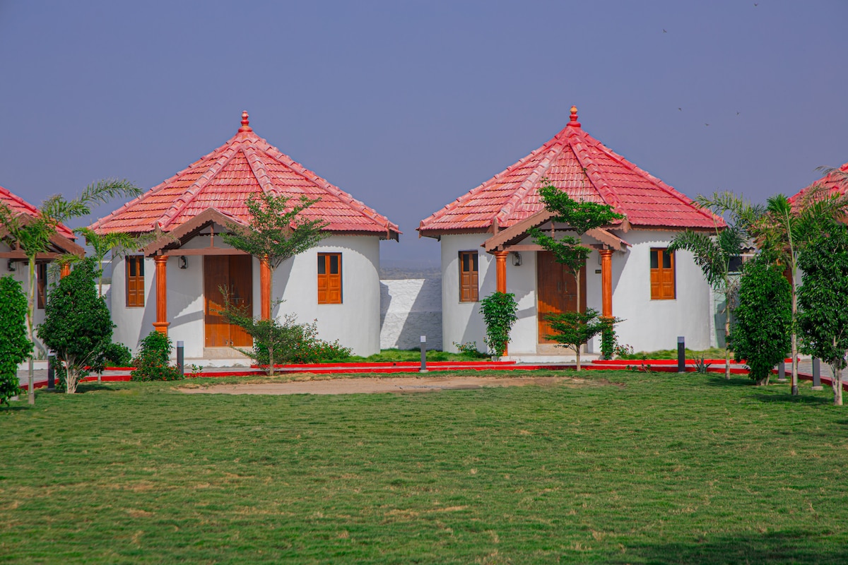 Experience royal charm in our Rajwadi Bhunga at StayGuru The Heaven Resort. Inspired by traditional heritage architecture, this beautifully designed bhunga features ethnic décor, a comfortable bed, and essential modern amenities for a relaxed stay. Ideal for couples and families, it offers a peaceful atmosphere surrounded by open landscapes and cultural elegance.