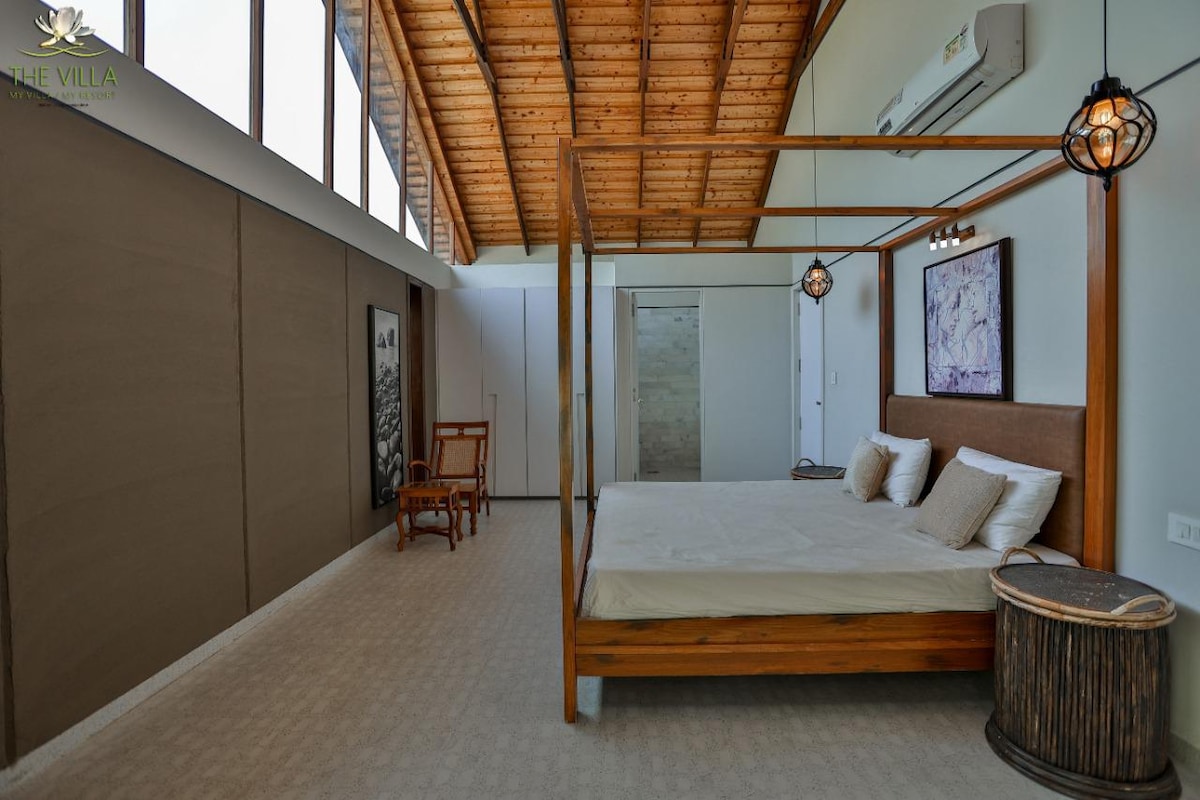 Relax with the whole family at this peaceful place to stay. A 6,000 sq. ft. villa with four luxurious bedrooms, a large living room, and a kitchen. Amenities include: television, utensils, fridge, washing machine, dishwasher, mixer, safe lockers, gas, oven, and board games. Enjoy access to a clubhouse with lawn tennis, badminton court, swimming pool, and beach volleyball court. Just 15 minutes from the city. Strictly not allowed non-vegetarian food, smoking, and alcohol.