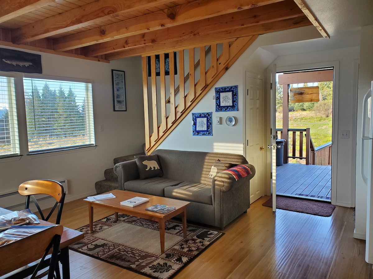 A cozy spot for adventurers to crash. This mother-in-law style apartment is below our home just 3 miles from downtown Homer. We have kids, cats, dogs, chickens, bunnies, and two horses, it’s nothing short of an actual zoo/circus around here. While your unit is private, there will be any of the above mentioned running around in the yard at any given time. We can’t promise you won’t hear occasional footsteps but we will promise to “whisper yell” at our kids to not run in the house :)