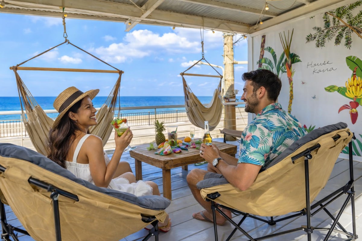 87平方米包租!在宽敞的阳台上欣赏海上日落和星空!步行即可抵达海滩、超市和餐厅