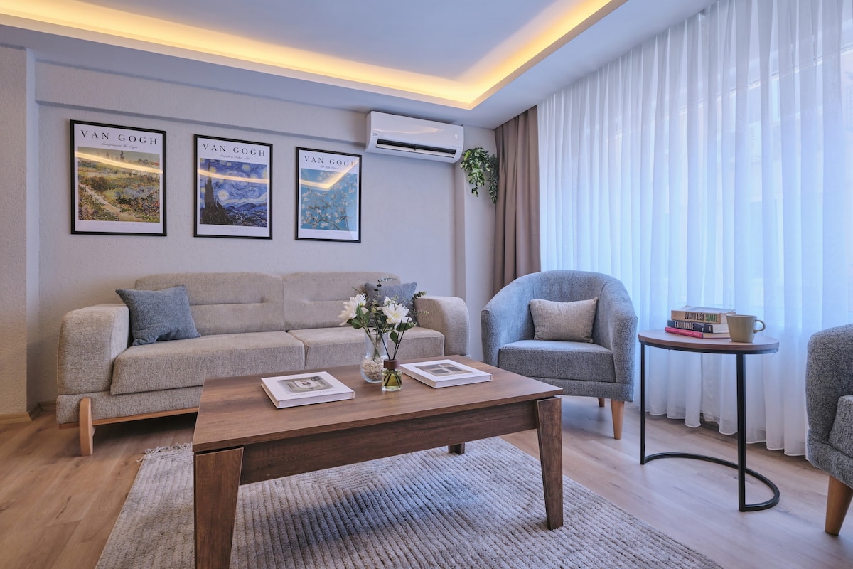 Our centrally located flat in Kadikoy offers an incredible opportunity with its prime location near all public transport. You'll enjoy comfort in this stylishly decorated home, equipped with fiber internet, air conditioning, and essential household goods. Just steps away from the vibrant Kadikoy life, the quiet, street-facing apartment is designed for your convenience. Unlike many old buildings you'll stay in a new building with an elevator, ensuring modern comfort and convenience for your stay.