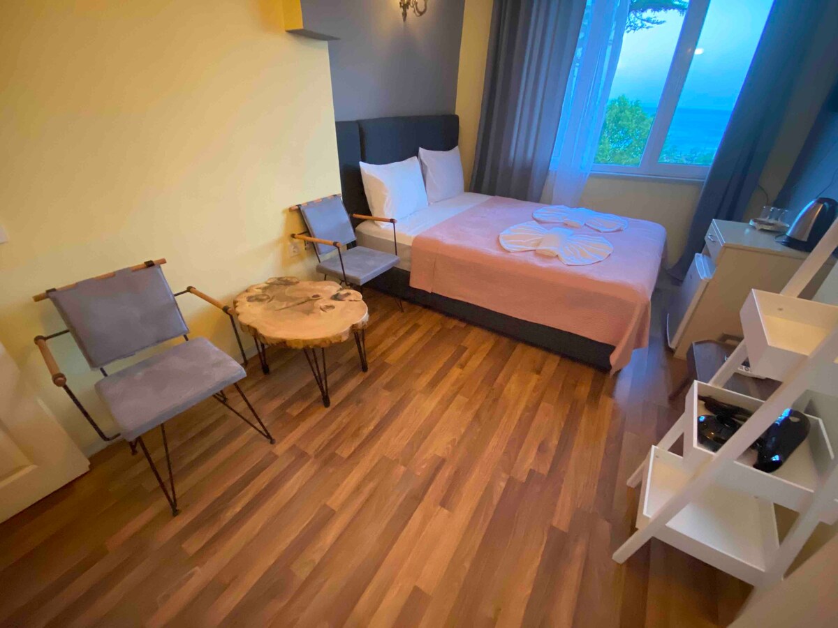 Our room is luxurious, modern and carefully designed. Located in our hotel, this room has a large double bed, a 43-inch smart television and a private bathroom. Our room has a small kitchen with a mini fridge and small kitchen supplies. Our room is on the 3rd floor. There is a 24/7 camera and security system. The exterior door of the building is specially coded and protected. Our room is designed to accommodate 2 people.