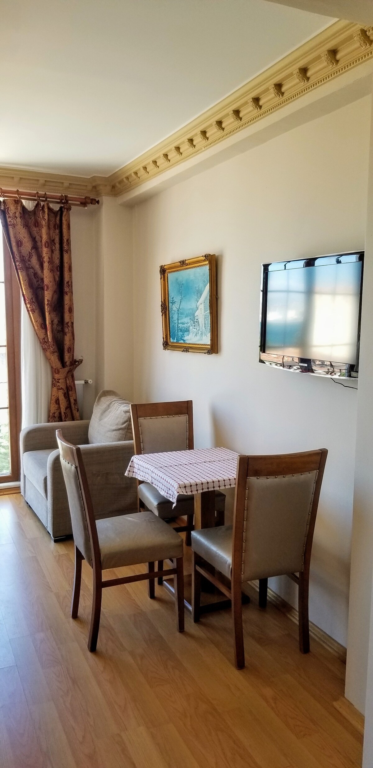 This unique apartment is in our modern boutique hotel in Ortaköy, Istanbul, just a 2-minute walk from Ortaköy Coast, the iconic Bosphorus Bridge, Ortaköy Mosque, and popular kumpir and waffle shops. It features a spacious bedroom, a living room, and a private backyard garden fully furnished for outdoor relaxation. With two air conditioners, a fully equipped kitchen, a washing machine, and a 40-inch TV, the luxurious and modern design ensures a comfortable stay for two guests.