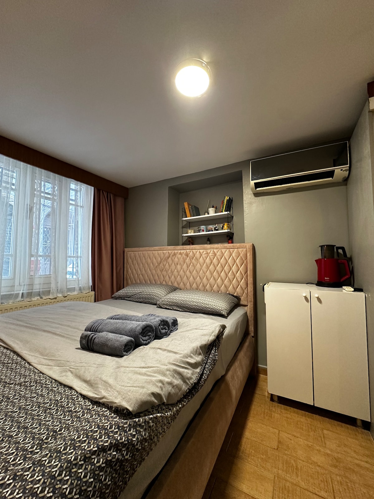 Private Studio Apartment, private bathroom & private entrance in the heart of the Sultanahmet Old City, just a min walk to all major historical sights Blue Sultanahmet Mosque & Hagia Sophia & Topkapı Palace & Underground Cistern and Sultanahmet Center.The apt is equipped with: *air-conditioning *free wifi*Flat Screen TV with satellite channels *orthopedic mattresses *mini size kitchen *dining table/chairs *iron & ironing board *hair dryer *towels, sheets and blankets,