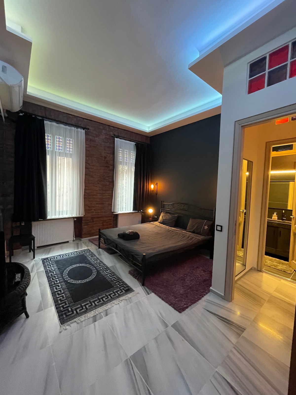Apt. is located in the heart of Istanbul. It is in a very central point that connects the old city and Beyoglu areas. Next to the Galata Bridge where you could walk to the old city and ‘Tünel’ 2nd oldest metro of the world from 1875, which takes you to Istiklal Avenue in 90 seconds. There is a very popular cafe in the entrance of the building. The flat includes AC, TV, wi-fi, a romantic indoor fireplace, hot water and all the other features.