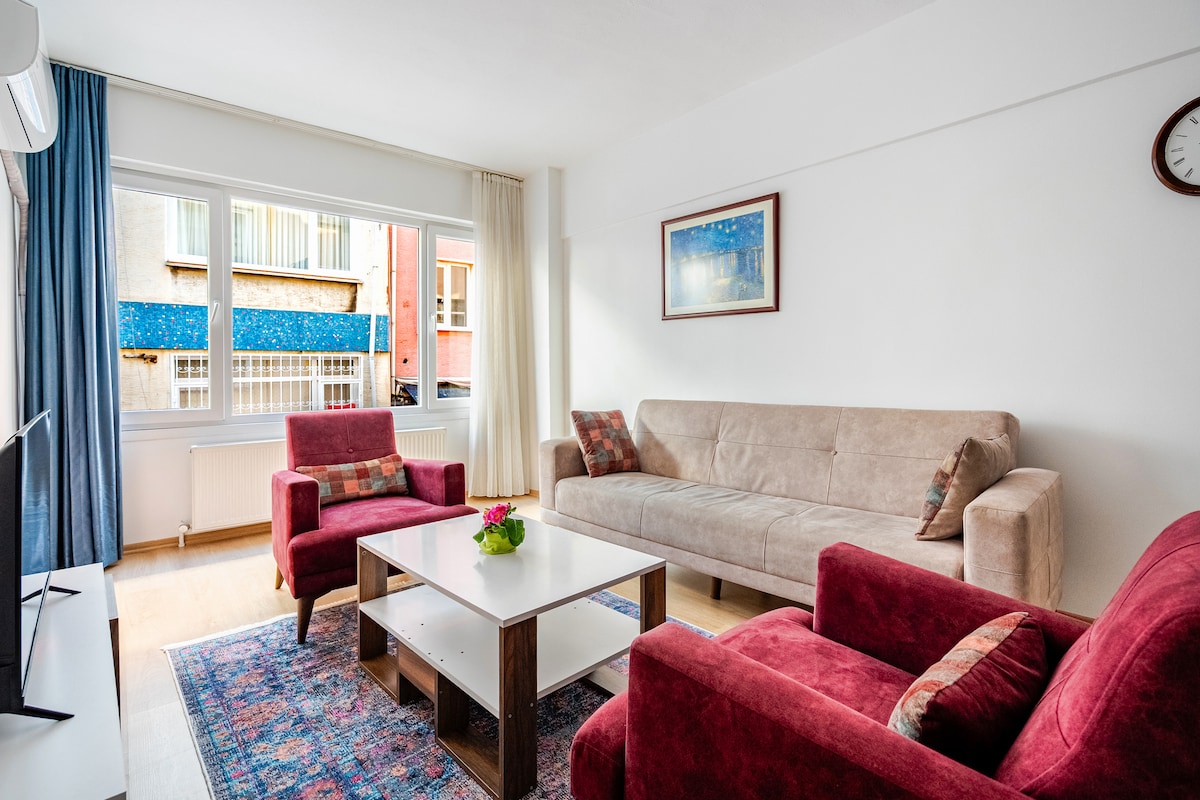 How about a peaceful and stylish stay for your comfort in Istanbul’s central, historic, and safe Beyoğlu district? Our apartment has 1 bedroom, 1 living room, a balcony, 2 bathrooms, and an open-plan kitchen. Ideal for 4 adults and 1 baby. Equipped with high-speed internet, a smart TV, and cozy touches that make you feel at home. Cook, work, or enjoy coffee on the balcony; easily reach the seaside, tram station, and historic sites. Don’t miss this comfort made just for you—book now!🫡