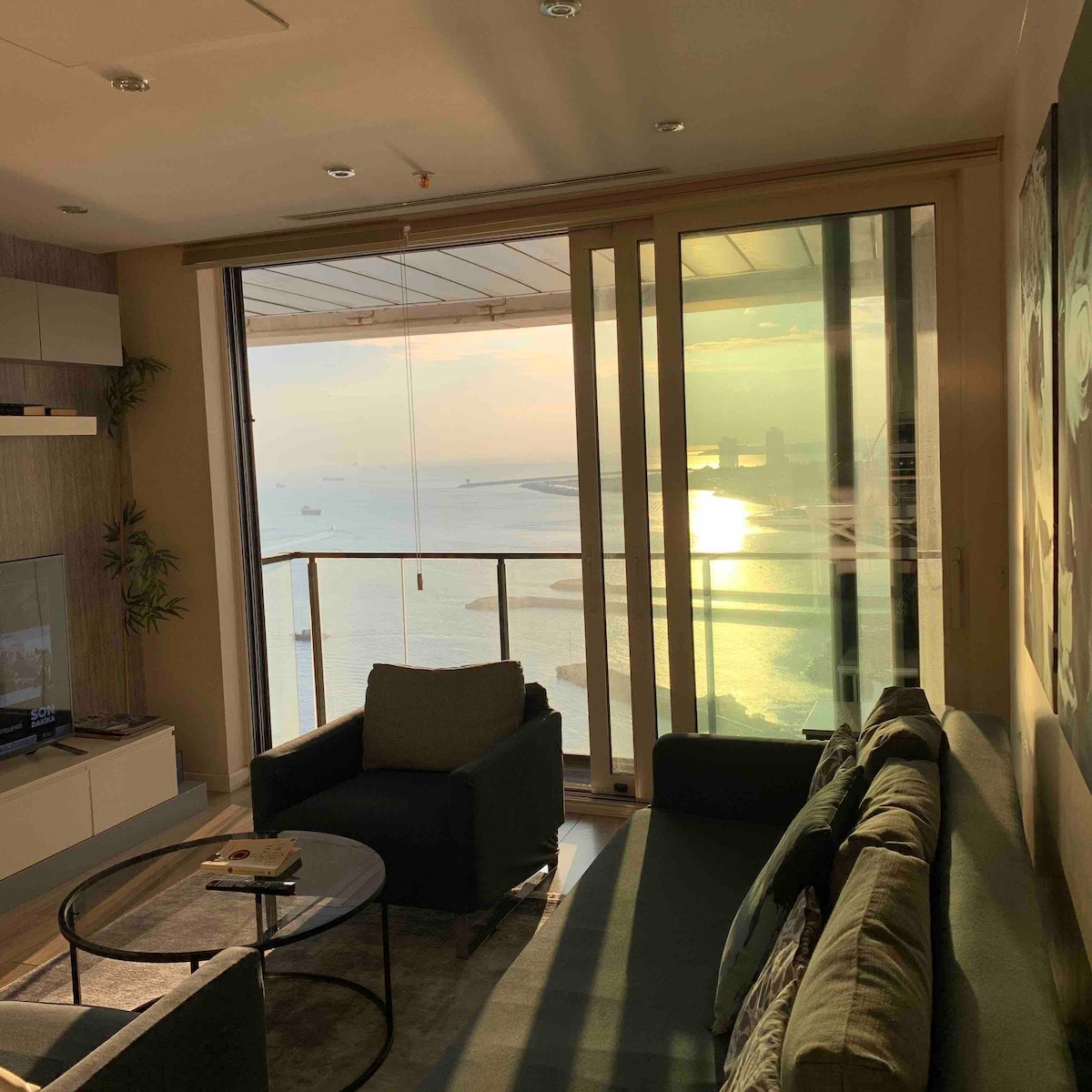 Private rooftop (130m²-1400 ft²) with 180°view | The apartment (150 m²-1620 ft²) with its own view | Motorized drop down projector screen with sound bar | King size beds in all bedrooms | 4 AC units are available | 7/24 security system | Private parking | Please feel free to contact me for your questions